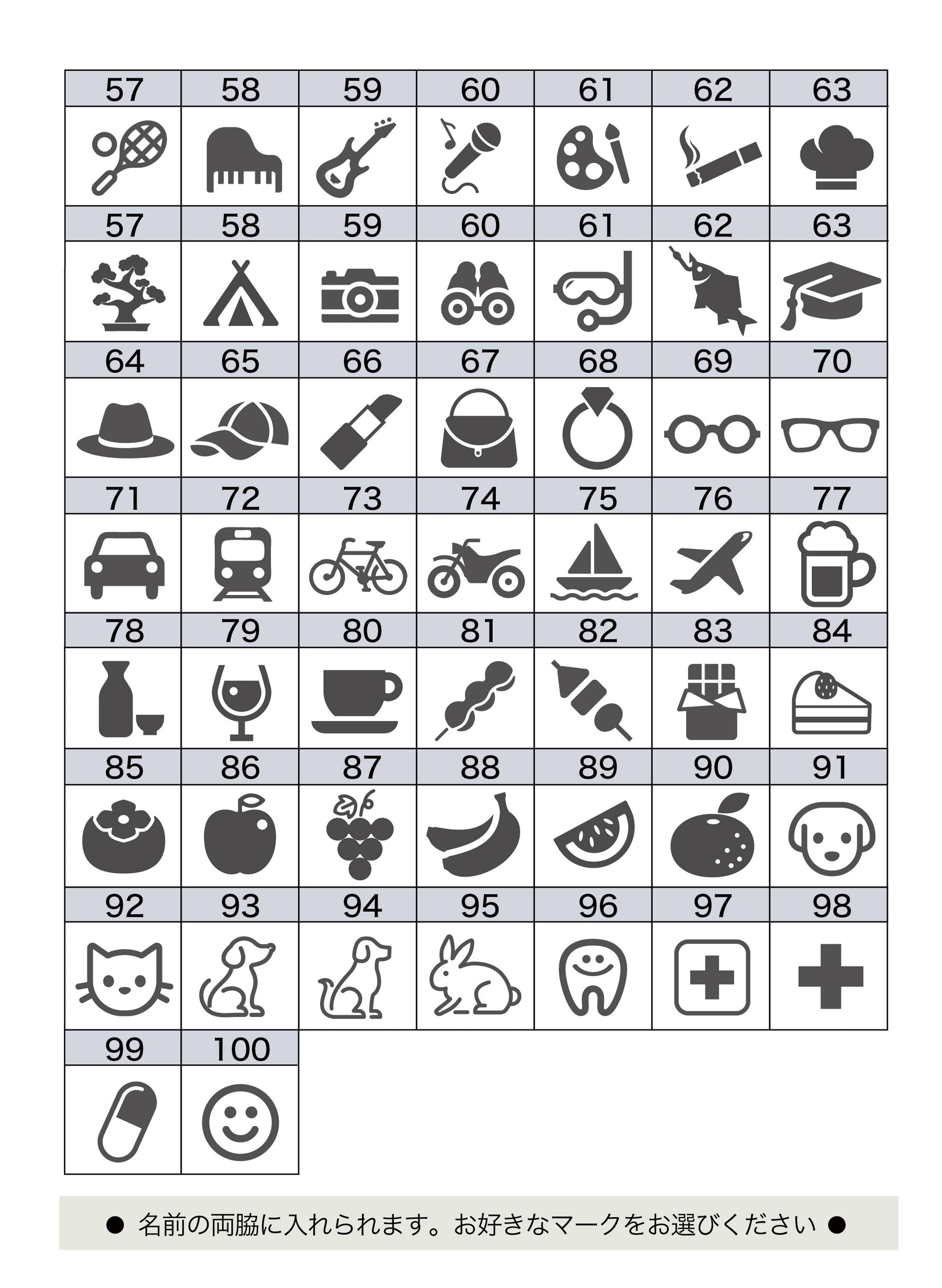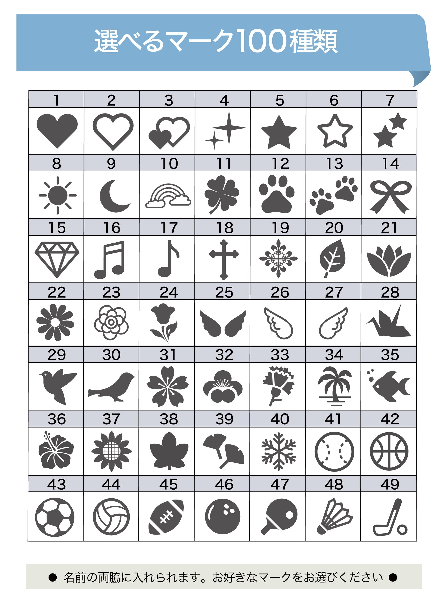 ■刻印マーク100種類、フォント8種類とデザイン豊富