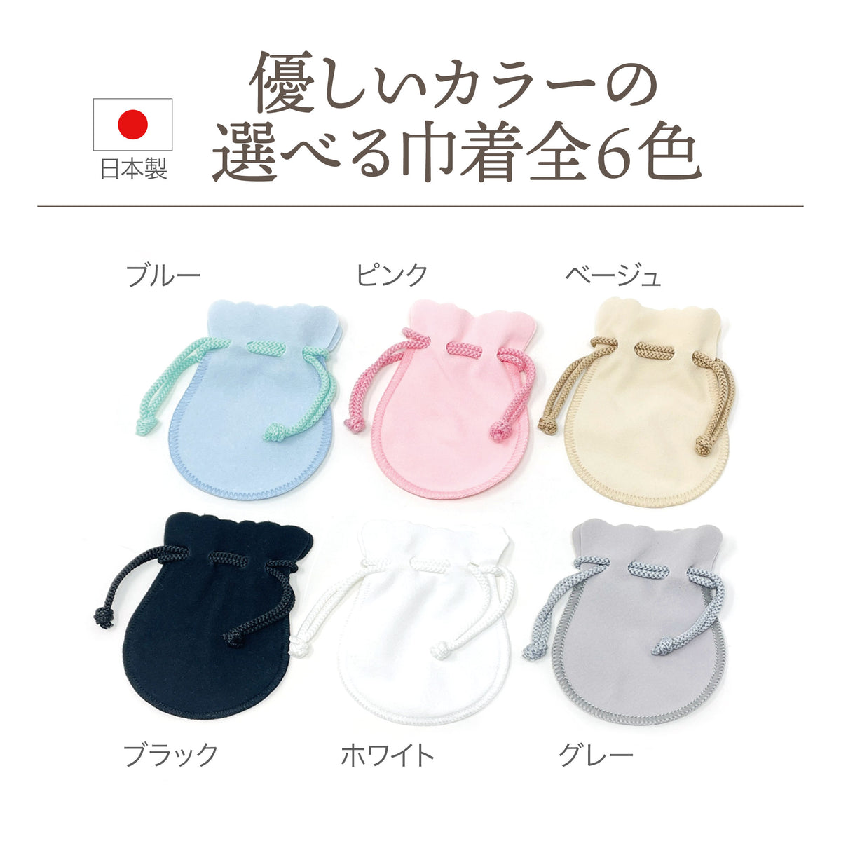■日本製の優しいカラー巾着6種類