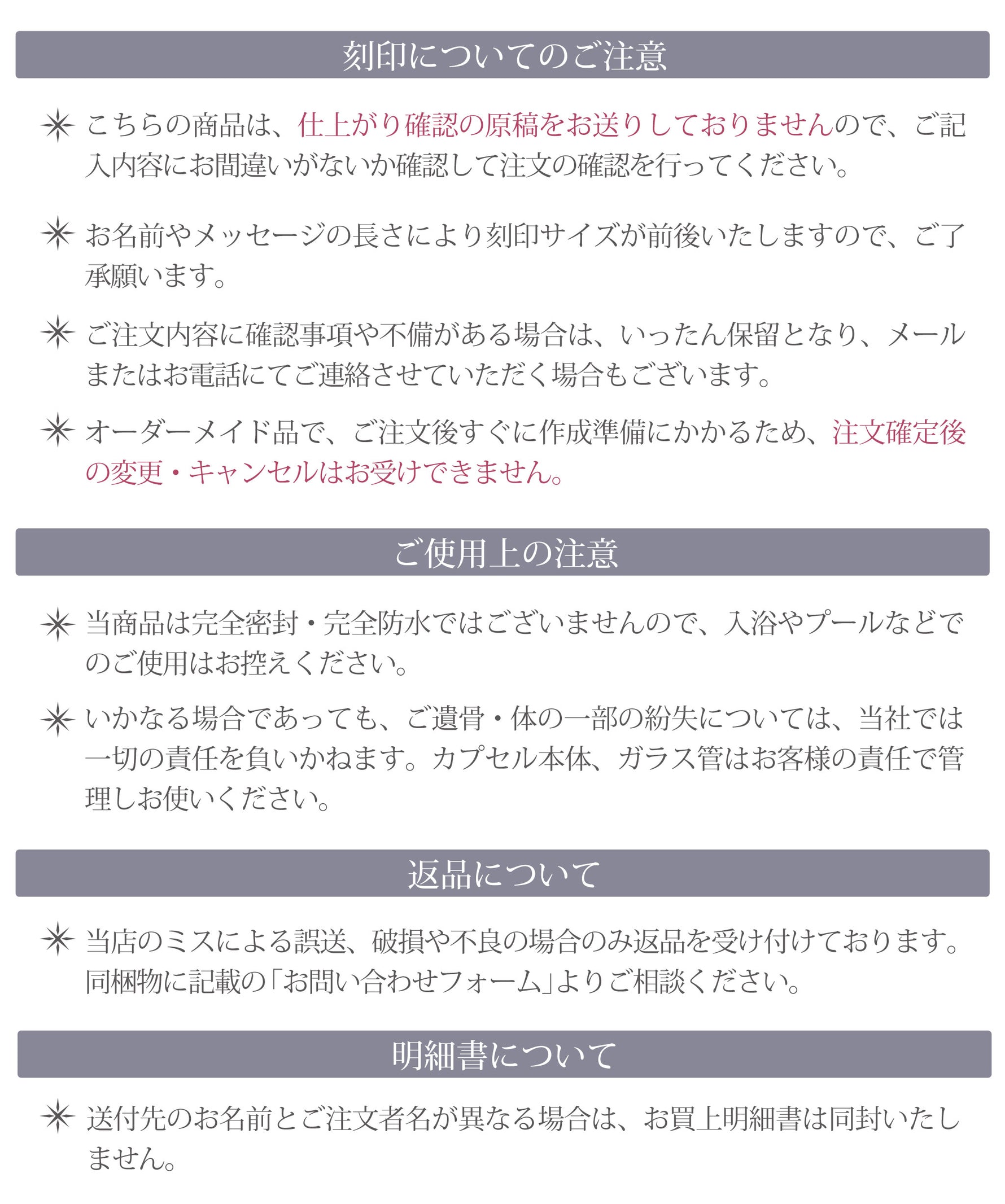 ・メモリアルカプセル、ガラス管はお客様の責任で管理しお使いください。