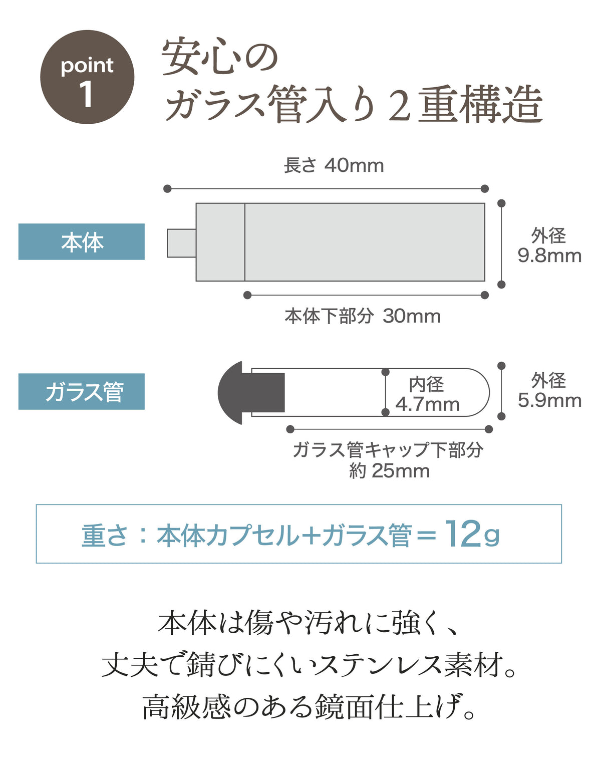 重さ 本体カプセル+ガラス管:12g