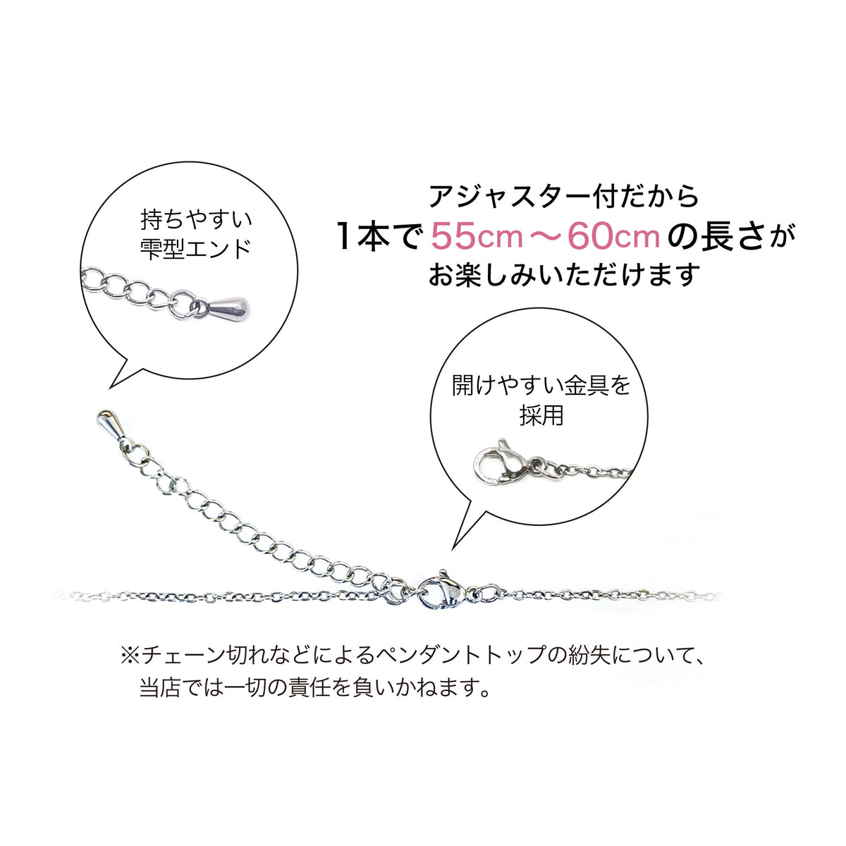 ペンダントチェーン:(約55cm+アジャスター5cm)