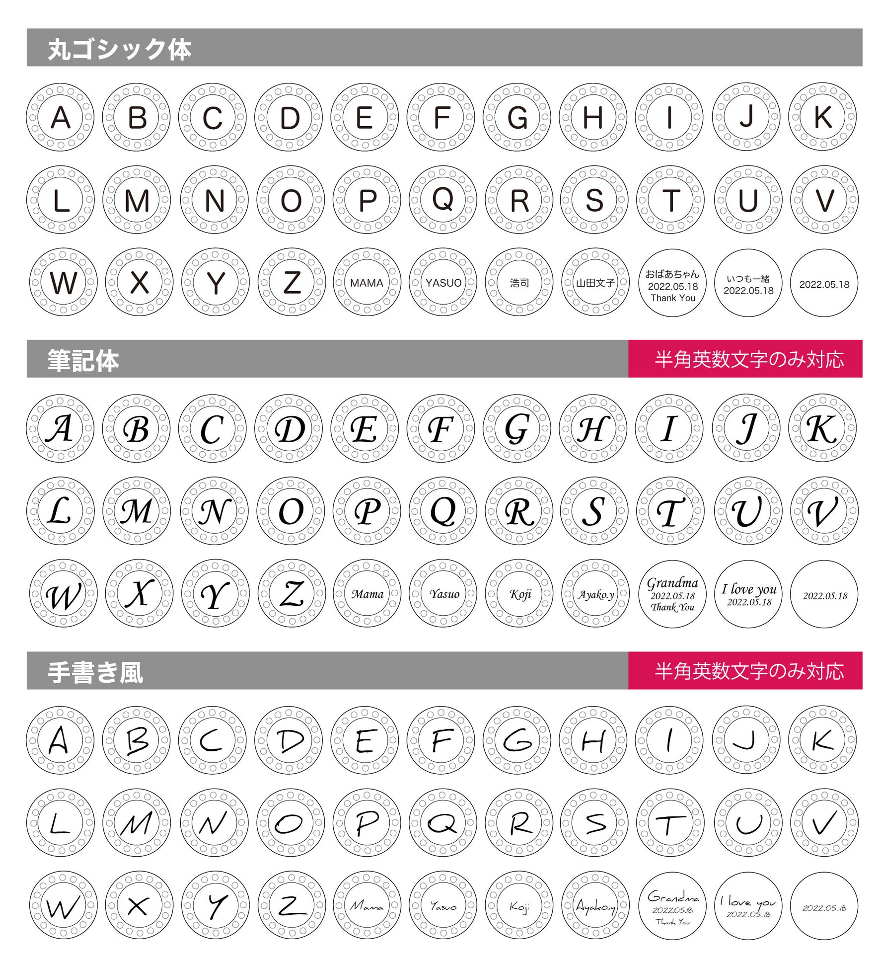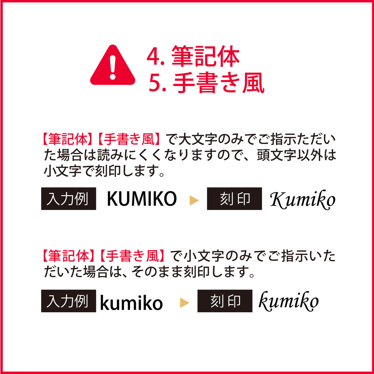 イニシャルの場合は大文字1文字、名前の場合は名前