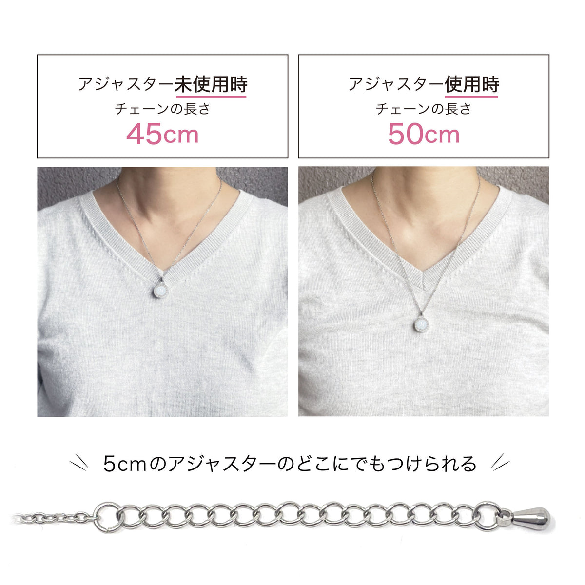 [チェーン]ステンレス・メッキ 45cm~50cm(アジャスター付)