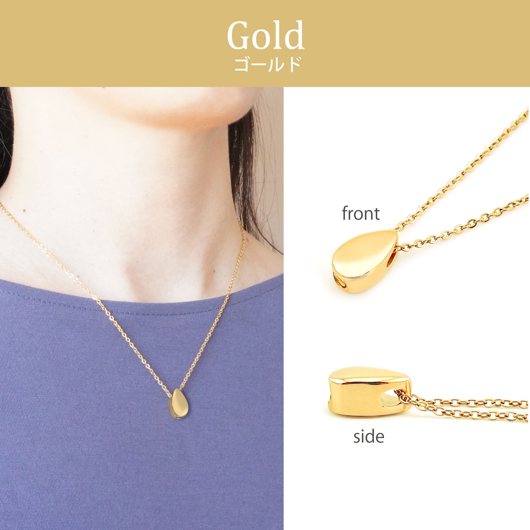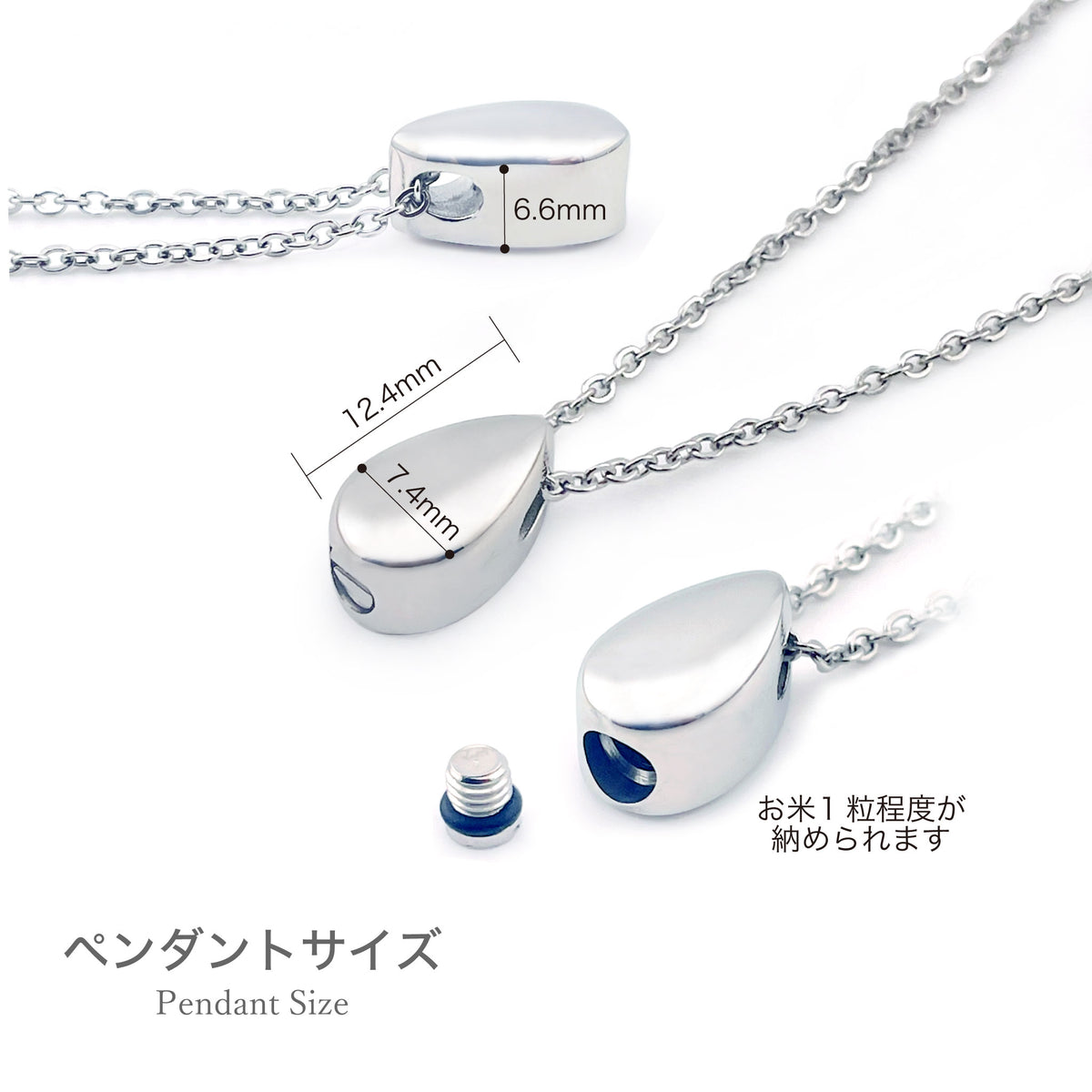 [ペンダントトップ]ステンレス:縦 12.4mm 横 7.4mm 厚さ 6.6mm [チェーン]ステンレス・メッキ 45cm~50cm(アジャスター付) |