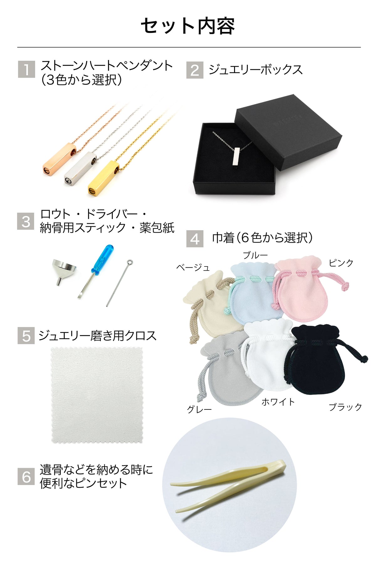 | 注意事項 | ・当商品は完全密封・完全防水ではございませんので、入浴やプール時のご使用はお控えください。 ・いかなる場合であっても、ご遺骨・体の一部の紛失については、当社では一切の責任を負いかねます。 |