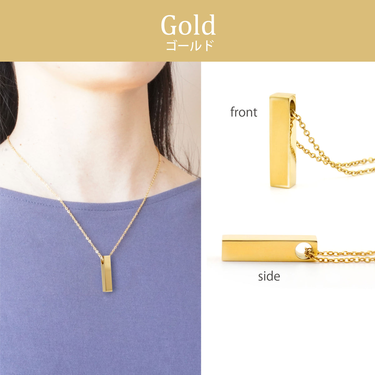 [ペンダントトップ]ステンレス:縦:25mm 横:5mm 高さ:5mm [チェーン]ステンレス・メッキ 45cm~50cm(アジャスター付) |