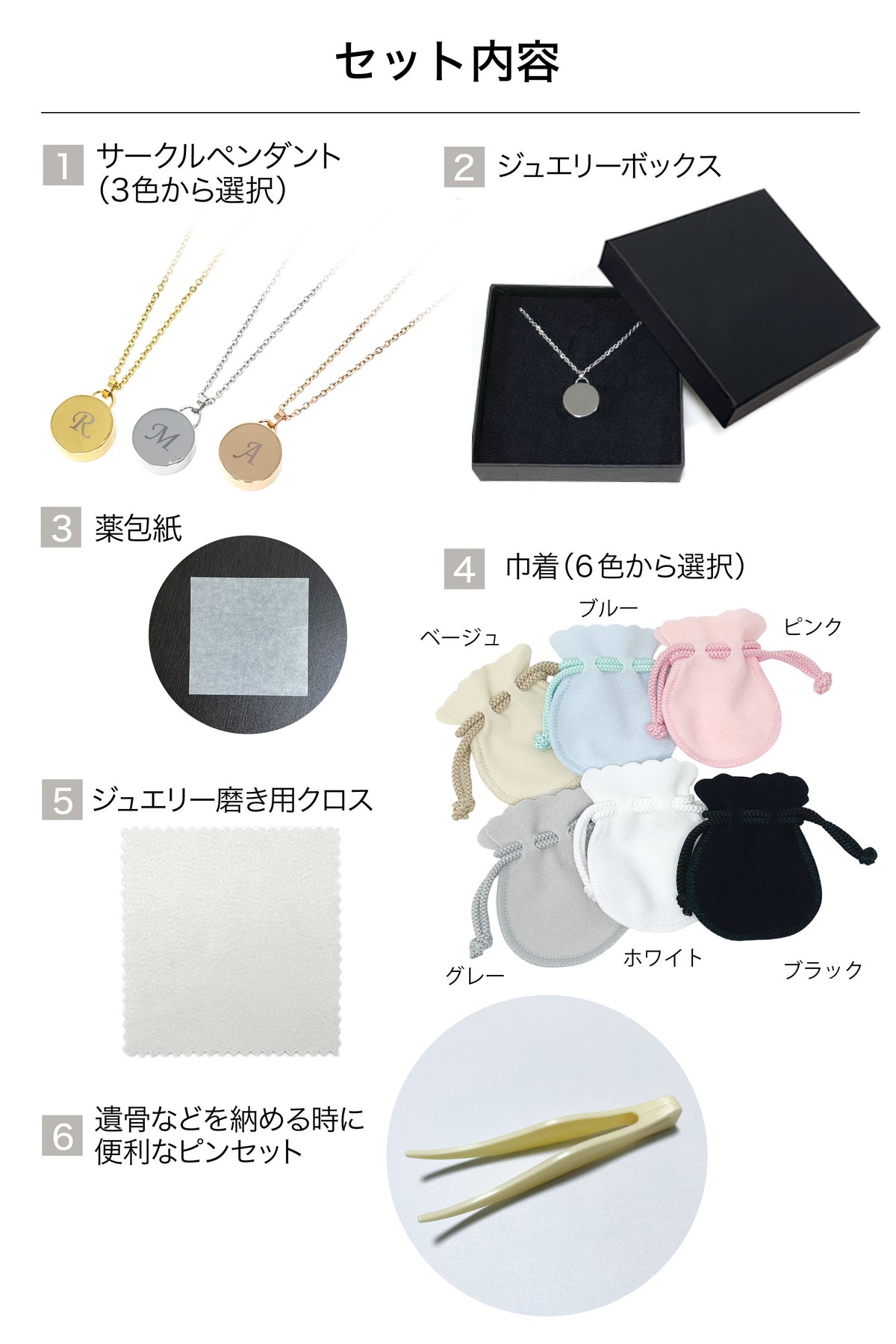 | 注意事項 | ・当商品は完全密封・完全防水ではございませんので、入浴やプール時のご使用はお控えください。 ・いかなる場合であっても、ご遺骨・体の一部の紛失については、当社では一切の責任を負いかねます。 |