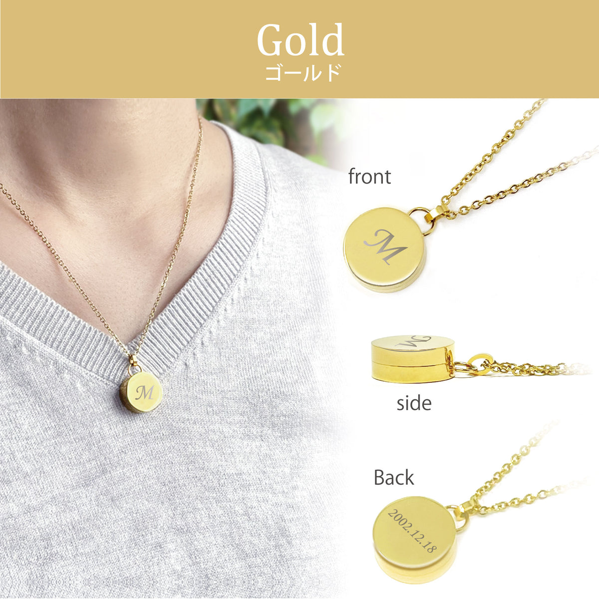[ペンダントトップ]ステンレス:直径約14.7mm 高さ約6.6mm [チェーン]ステンレス・メッキ 45cm~50cm(アジャスター付) |