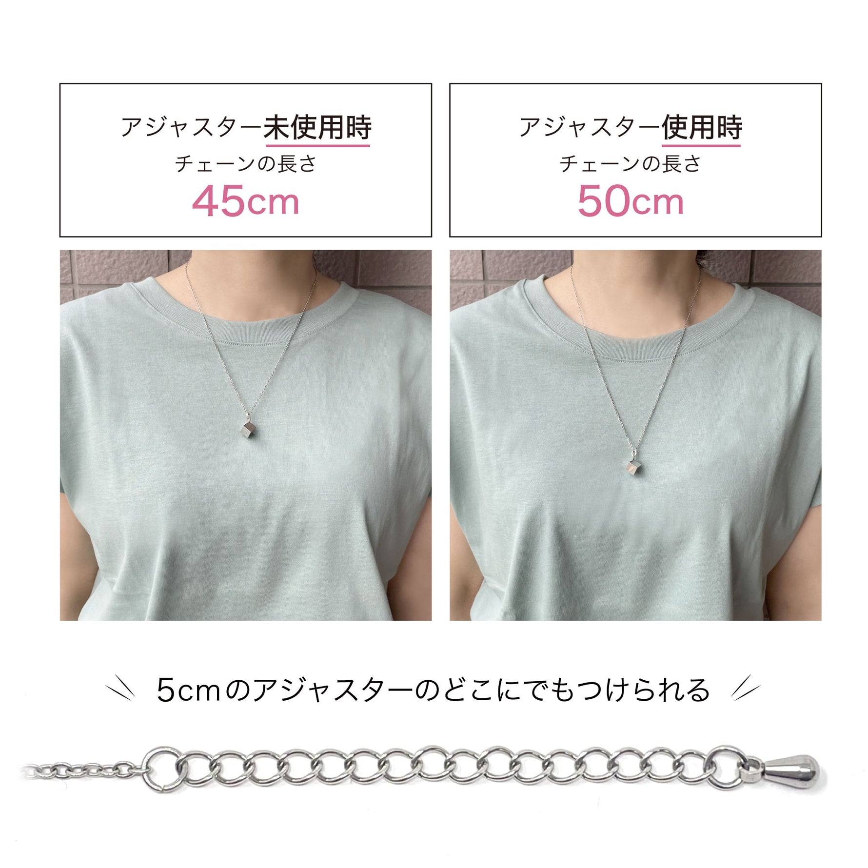 [ペンダントトップ]ステンレス:7.7mm×7.7mm [チェーン]合金・メッキ 45cm~50cm(アジャスター付) |