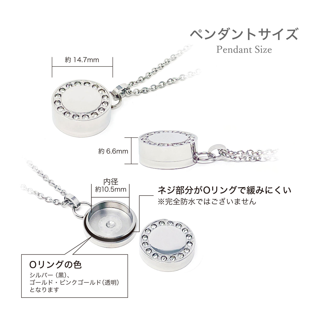 | 注意事項 | ・当商品は完全密封・完全防水ではございませんので、入浴やプール時のご使用はお控えください。 ・いかなる場合であっても、ご遺骨・体の一部の紛失については、当社では一切の責任を負いかねます。 |