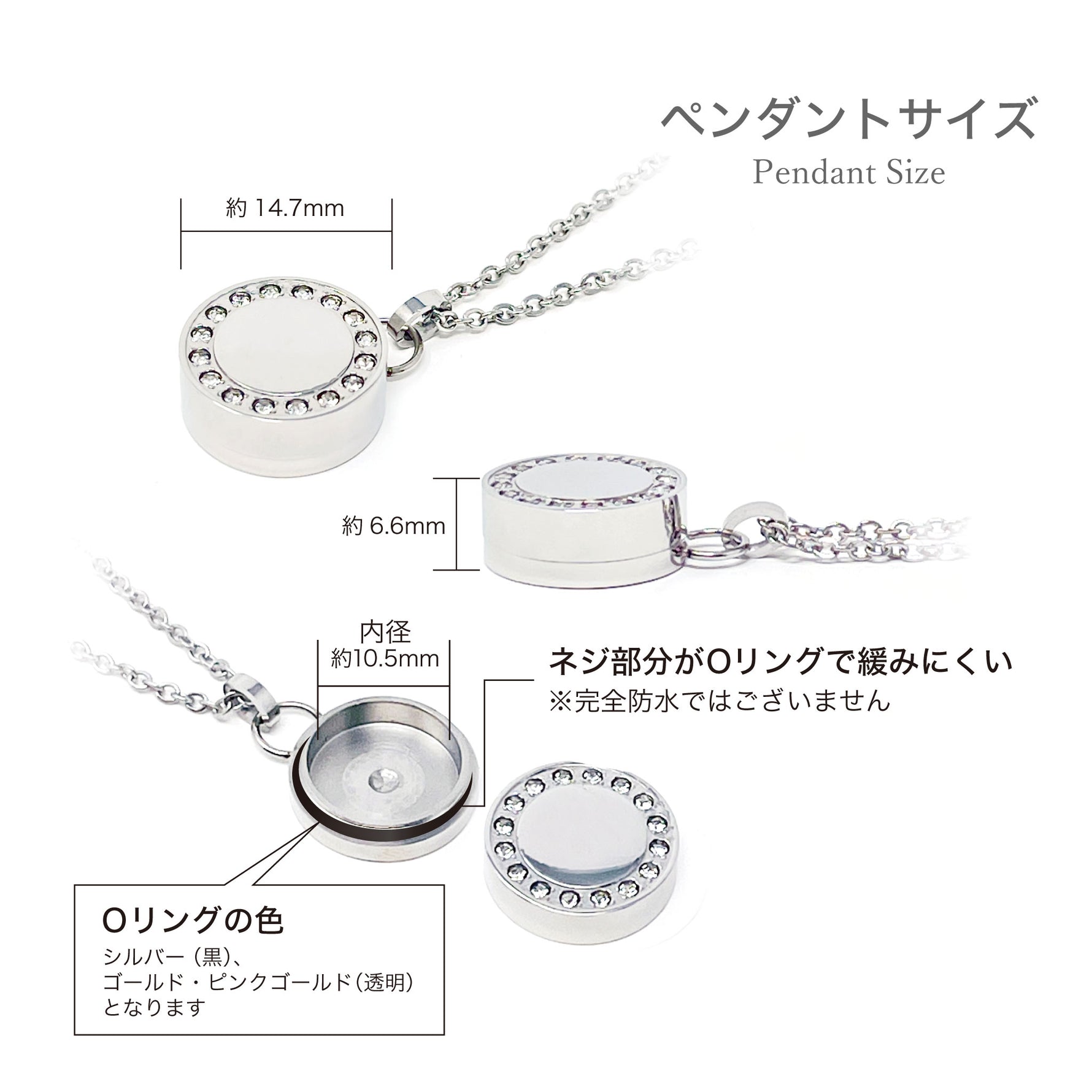 [ペンダントトップ]ステンレス:直径14.7mm 高さ6.6mm [チェーン]ステンレス・メッキ 45cm~50cm(アジャスター付) |