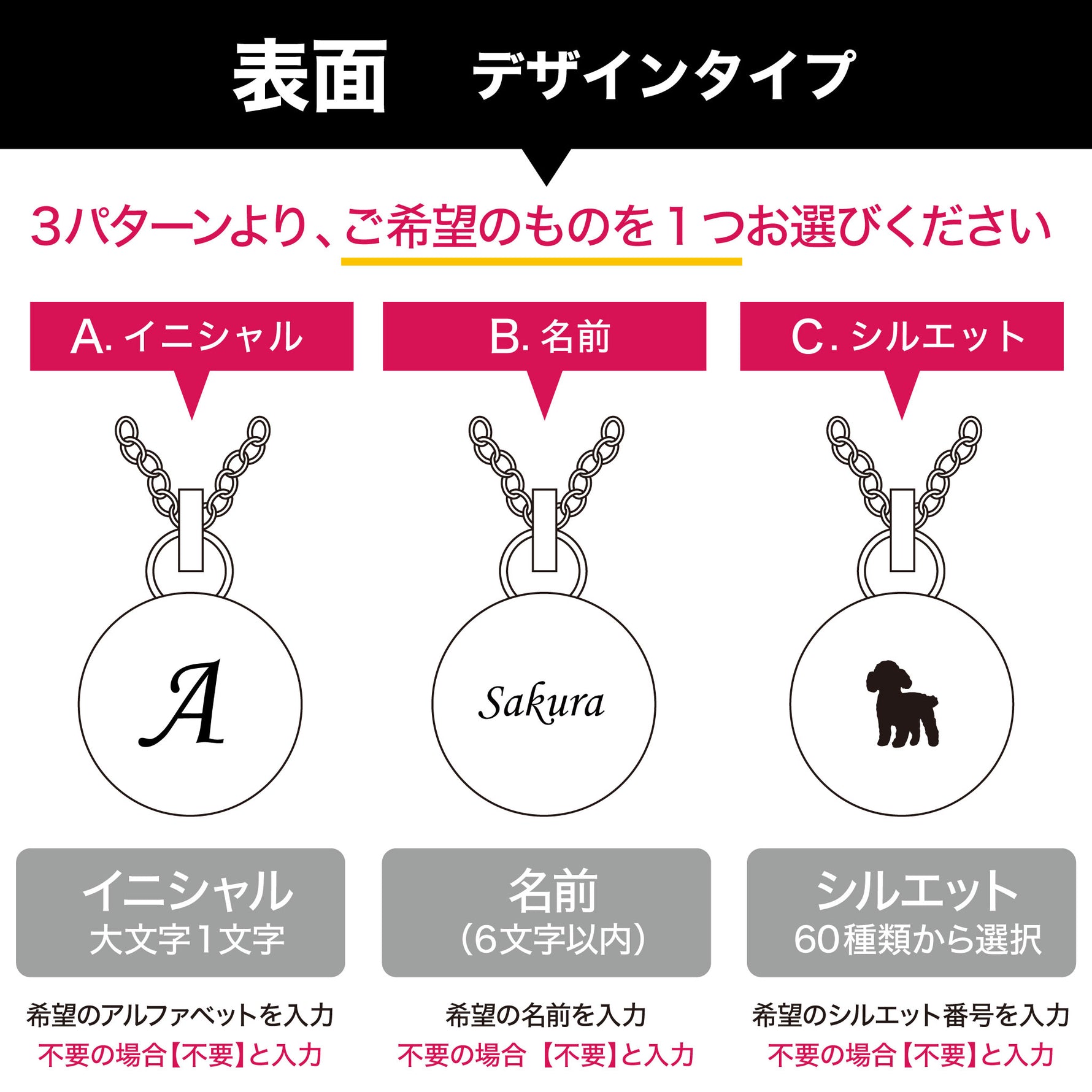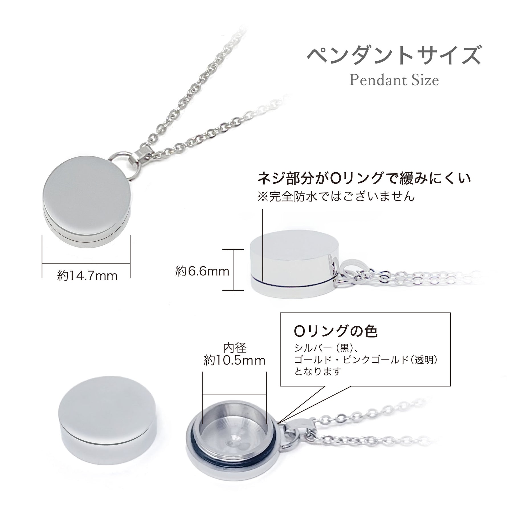[ペンダントトップ]ステンレス:直径14.7mm 高さ6.6mm [チェーン]ステンレス・メッキ 45cm~50cm(アジャスター付) |