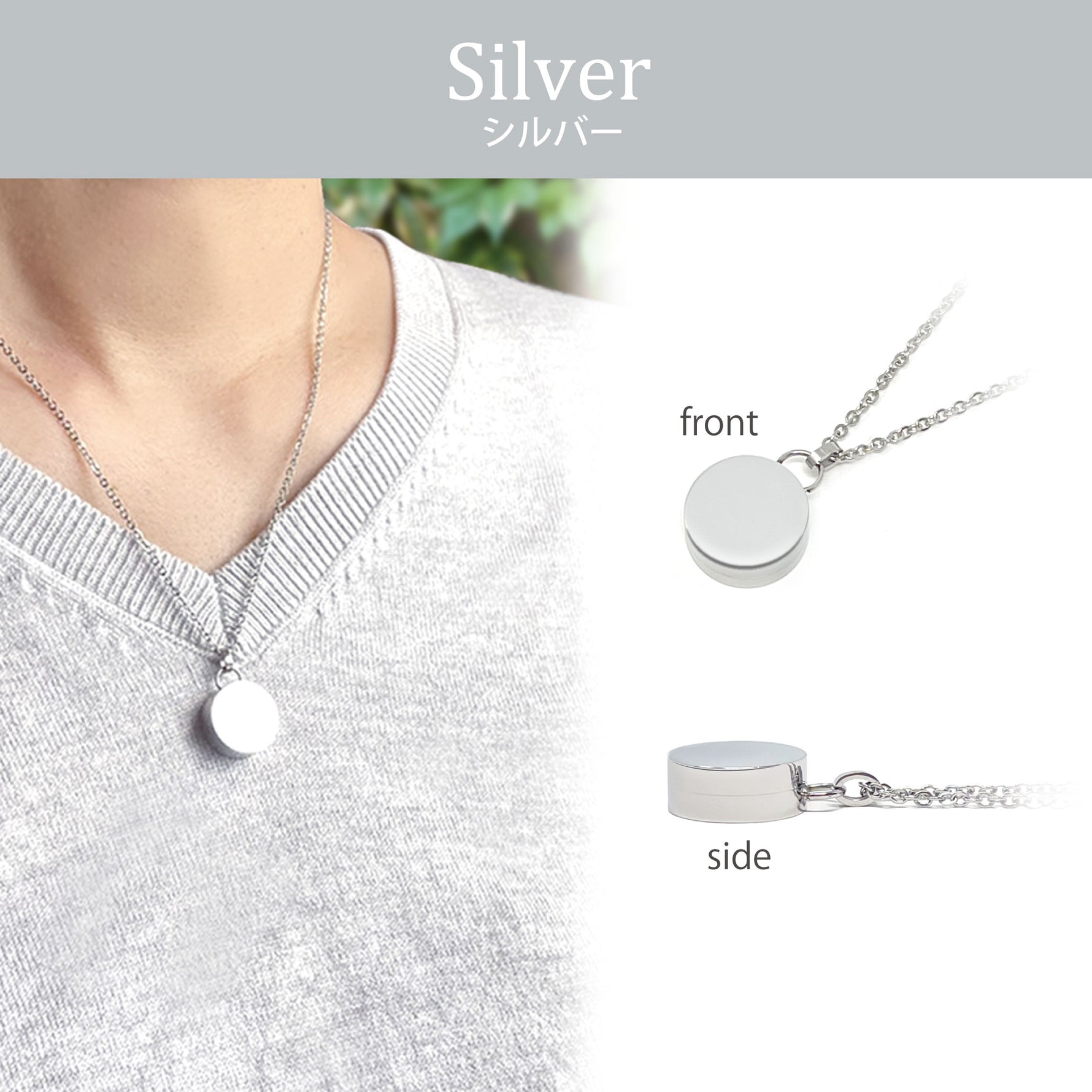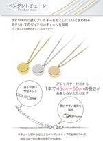 | 材質・サイズ | [ペンダントトップ]ステンレス:直径14.7mm 高さ6.6mm [チェーン]ステンレス・メッキ 45cm~50cm(アジャスター付) |