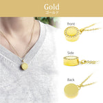 | 材質・サイズ | [ペンダントトップ]ステンレス:直径14.7mm 高さ6.6mm [チェーン]ステンレス・メッキ 45cm~50cm(アジャスター付) |