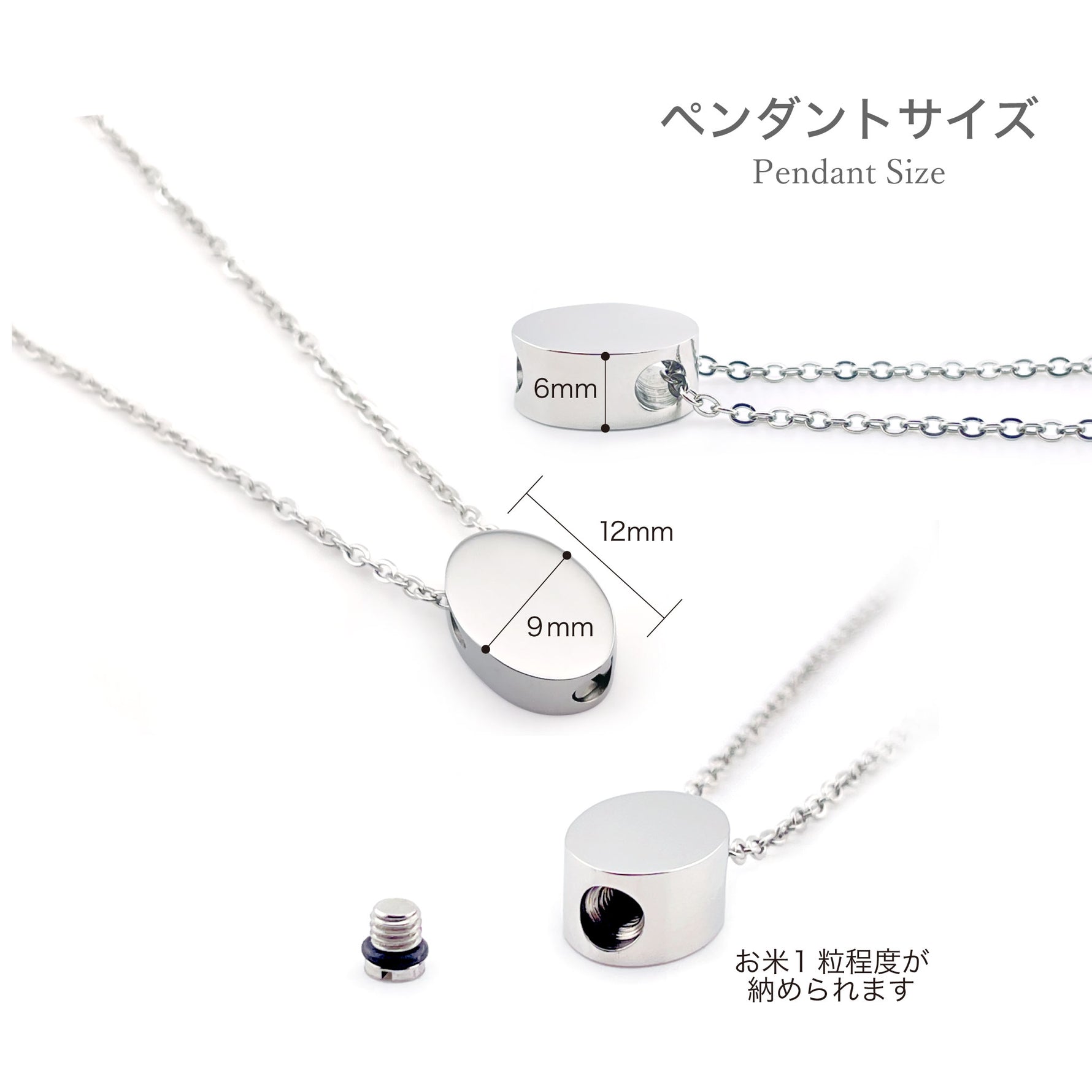 [ペンダントトップ]ステンレス:横幅9mm 縦幅12mm 高さ6mm [チェーン]ステンレス・メッキ 45cm~50cm(アジャスター付) |
